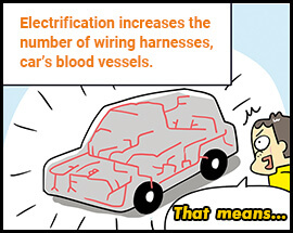 The more electronic devices there are in a car, the greater the number of circuits needed to connect them. For example, seat heaters, previously an option limited to premium vehicles, are now commonplace in compact cars. The inexorable upward trend in performance and functionality is spurring the proliferation and growing complexity of wiring harnesses. Where will it all end?