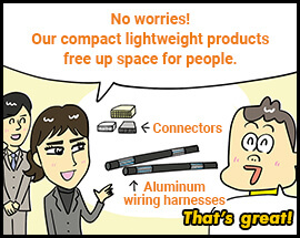 No worries. Sumitomo Wiring Systems is developing new technologies and products in step with the progress of cars. For example, aluminum harnesses are a world first from Sumitomo Wiring Systems. “We are the first in the world to employ highstrength aluminum alloy wire in engine harnesses, instead of the copper wire conventionally used. As a result, the weight is halved without reducing the number of circuits,” says a smiling Ms. Hyunju Kim of Corporate Communications at Sumitomo Wiring Systems with evident pride. In another breakthrough, for electric vehicles the company has developed under-floor pipe harnesses that enclose high-voltage harnesses, making it possible to handle large currents while shielding against electromagnetic noise. A wide choice of wiring harnesses is available to meet the needs of different vehicle types and environments.