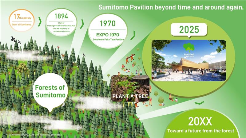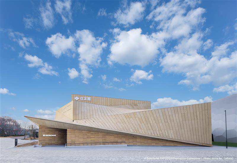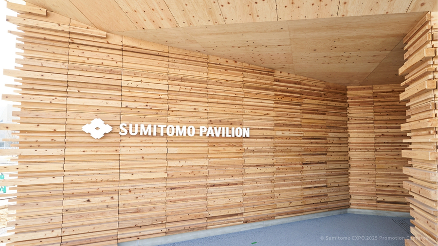 The Sumitomo Pavilion was constructed directly in front of the East Gate of the Expo site. It was built using trees from the Sumitomo Group’s “Sumitomo Forest,” with every part of the trees carefully utilized, guided by the desire to “cherish the life of each and every tree.” Designed as a space that connects past, present, and future, the pavilion embodies the concept of “Sumitomo Pavilion Beyond Time and Around Again,” linking the trees of the forest inherited from the past to the future through the tree-planting experience.