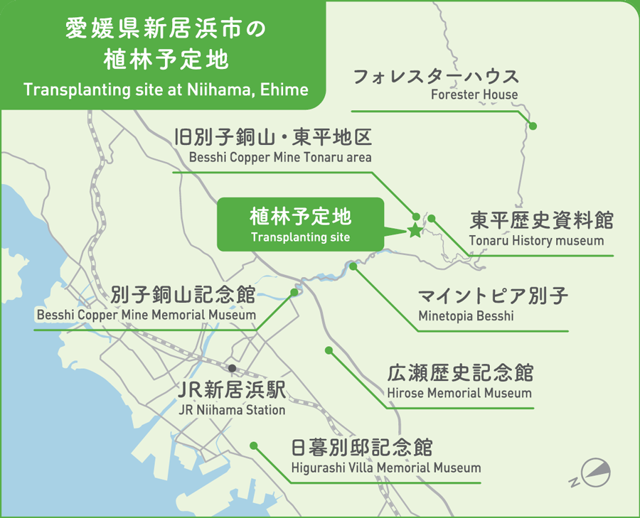The saplings are scheduled to be transplanted to Niihama City in Ehime Prefecture, including the area where trees were felled to provide timber for constructing the Sumitomo Pavilion.