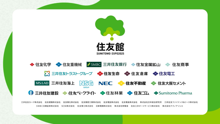 住友館は構成企業19社、協賛企業15社が参加しています。大阪・関西万博では、住友グループ各社の力を結集して、日本発の技術を世界に発信しました。このコーナーでは、住友グループの連携によって絆を深めた取り組みについて紹介します。