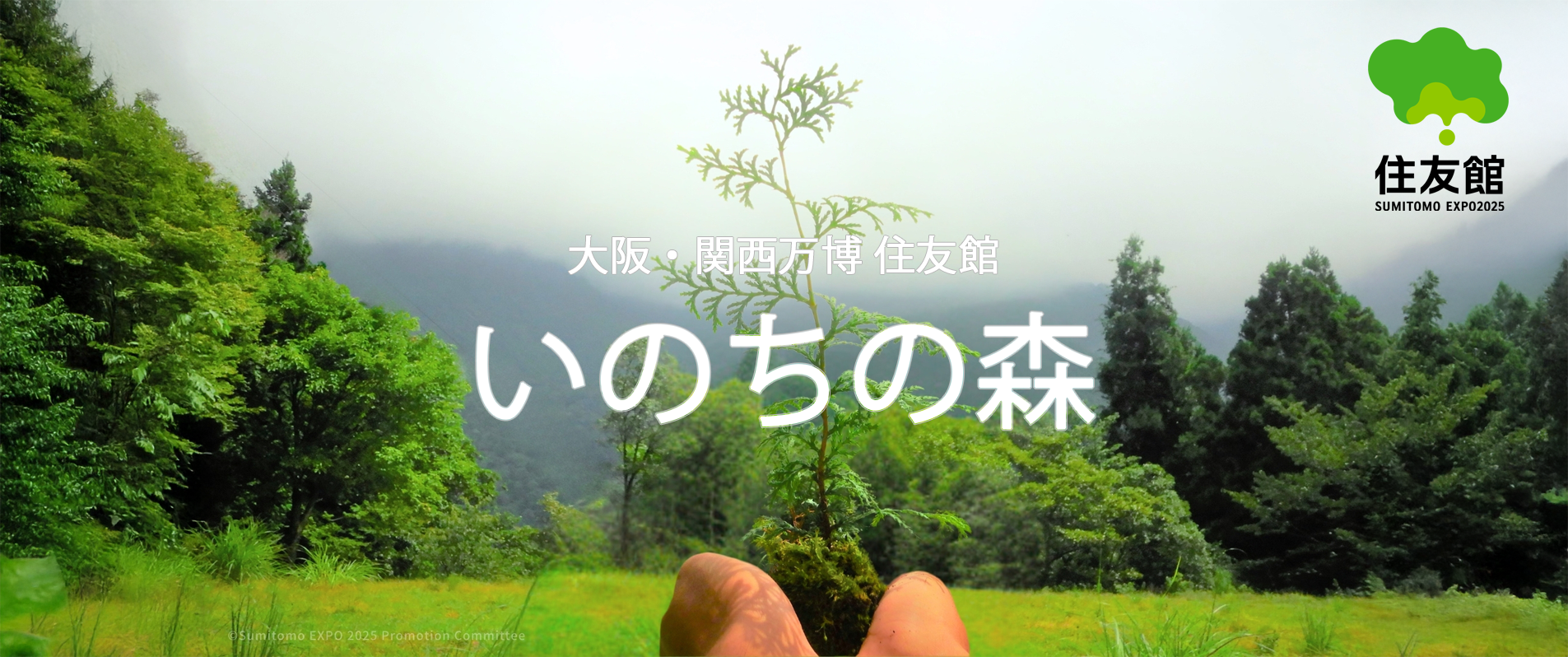 大阪・関西万博において、住友館は来場者が未来の森づくりに参加できる「植林体験」を実施しました。子どもたちが植えたヒノキの苗木は、住友館の建築のために木を伐採した跡地に植林され、やがて豊かな森に成長し、未来へと受け継がれます。「いのちの森」と名付けられたこの森は、数十年後、数百年後、どのような姿になっていくのでしょうか。このコーナーでは苗木の成長の様子をレポートします。